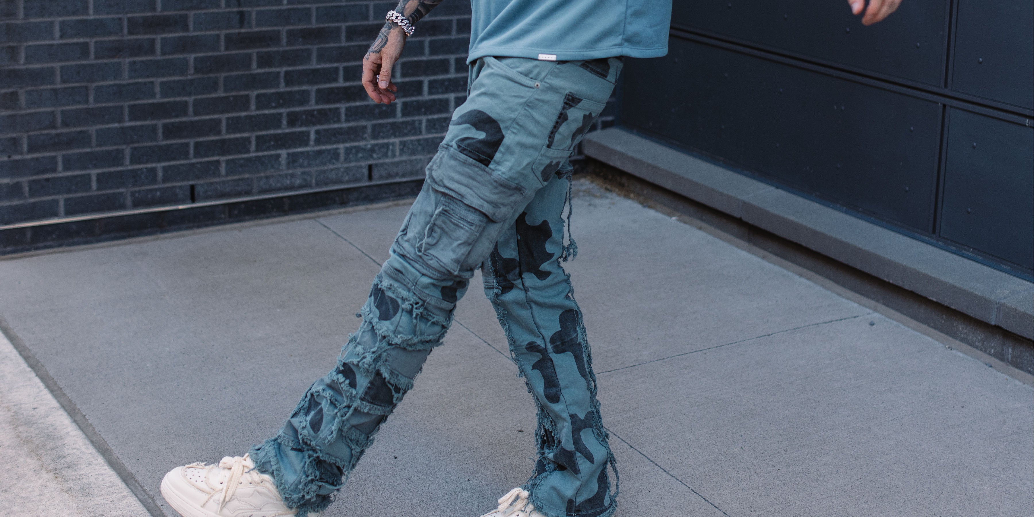 T4034 Distressed Camo Denim
